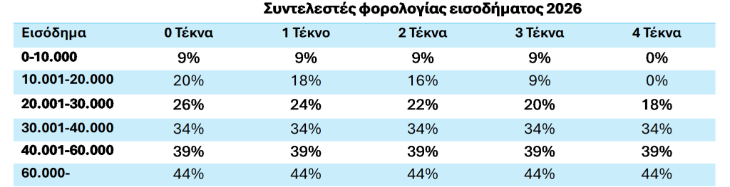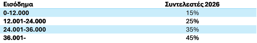 Συντελεστές φορολογίας εισοδήματος απο ενοίκια 2026